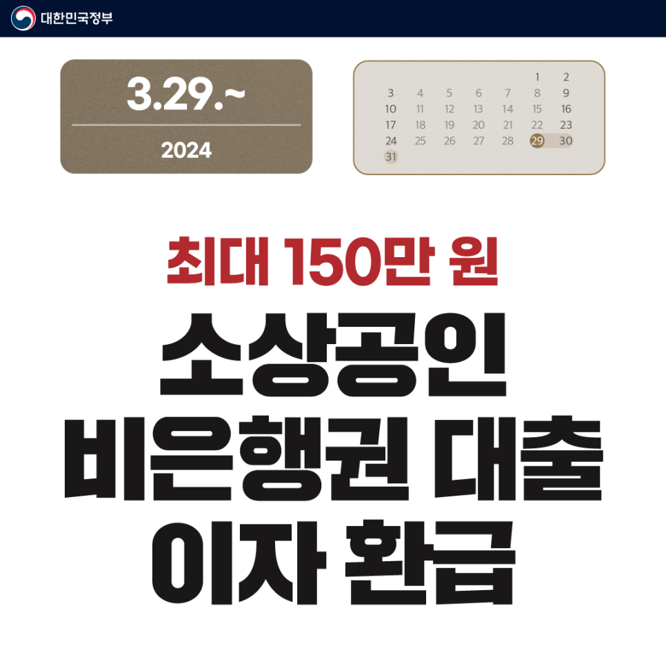 3월 29일부터 소상공인의 비은행권 대출에 대한 이자를 환급해 드립니다.