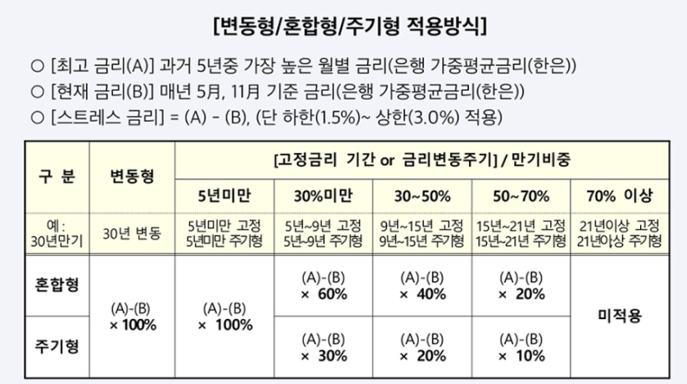 - 그 외는 변동형에 준하여 스트레스 금리 × 100% 적용