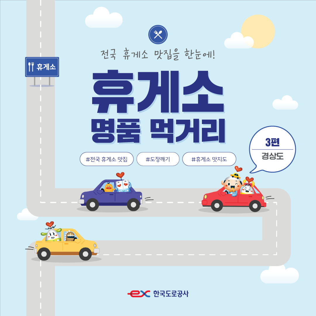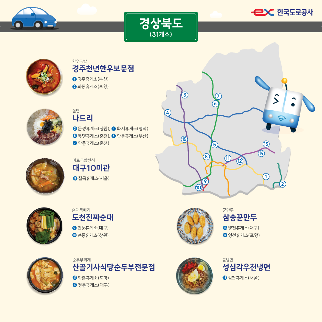 한국도로공사에서 준비한 휴게소 맛집 리스트 3탄 경상남도 경상북도 입니다.