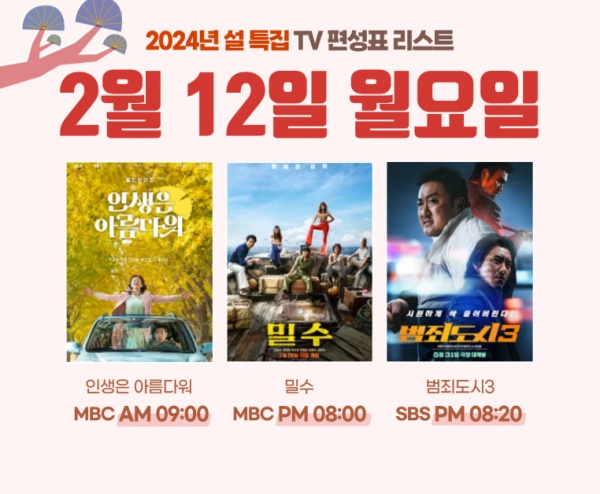 올해 설 연휴에도 많은 TV 특선 영화들이 우리를 기다리는데, 날짜별로 알아보겠습니다.